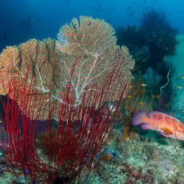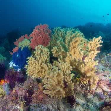 I was blown away by how healthy and colorful most of Raja Ampat’s reefs are. Unlike many places where coral bleaching has left scars on the ocean floor, a large portion of Raja Ampat still feels untouched, like it’s been perfectly preserved in time. Giant sea fans, vibrant soft corals, and towering coral bommies create an almost surreal backdrop for every dive.